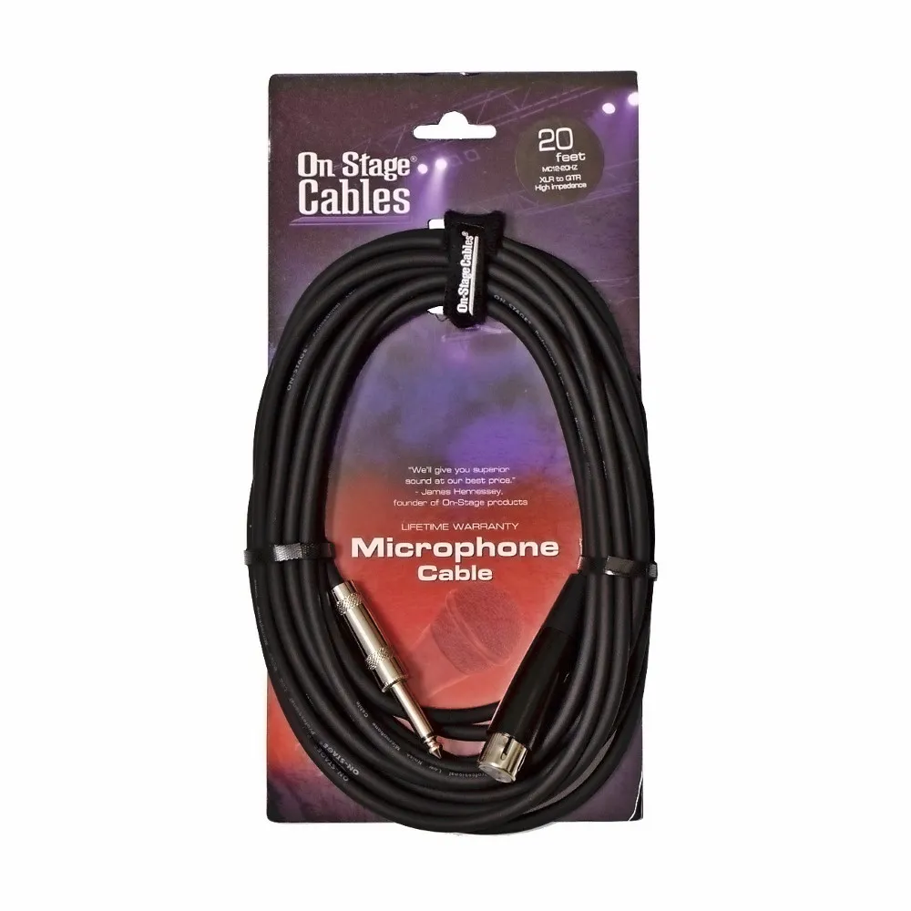 OnStage MC12-20HZ — профессиональный микрофонный кабель длиной 6,1 метра. Медные проводники (диаметр 0,64 мм) защищены гибкой изоляцией и экранирующей оплёткой. Коннекторы: XLRF и моно джек 6,3 мм. В комплекте ремешок для хранения.