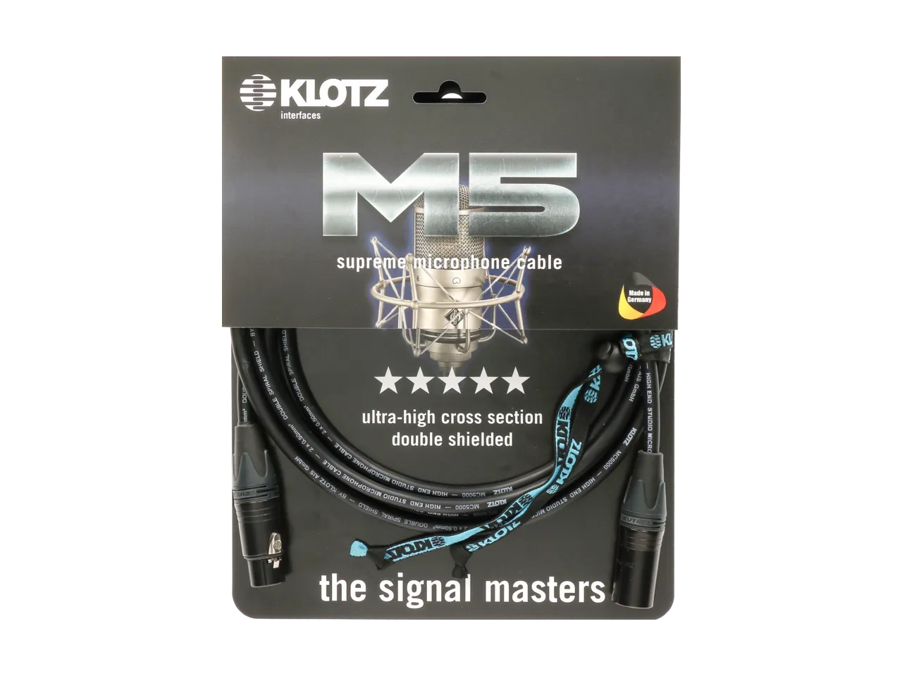 Микрофонный кабель верхнего уровня M5 KLOTZ AIS GmbH гарантирует передачу сигнала практически без потерь на большие расстояния и создает непревзойденную защиту от помех за счет сложной структуры экрана. Двойной спиральный медный экран, завитый в противоположных направлениях, обеспечивает 100% покрытие и надежное экранирование линии от электромагнитных помех. Уникальный дизайн M5, характерный только для кабеля М5000 KLOTZ, с большим поперечным сечением проводника (0.5 мм²), предполагает максимальную прозрачность и превосходное разрешение с выдающимися емкостными характеристиками (всего 55 пФ/м). Каркас из экструдированного поливинилхлорида позволяет сохранять расположение проводников при активном применении и выдерживать более 25 000 циклов изгибаний. Также, благодаря тонкопроволочному центральному проводнику, выполненному с высокой точностью, параметры затухания и электромагнитной совместимости кабеля M5 превосходны. Внешняя оболочка из поливинилхлорида со свойствами резины - идеальный выбор для использования в студийных помещениях с нормальным уровнем механических нагрузок. Качественные разъемы XLR Neutrik с позолоченными контактами добавляют последний результативный штрих к великолепному звучанию.Характеристики и возможности