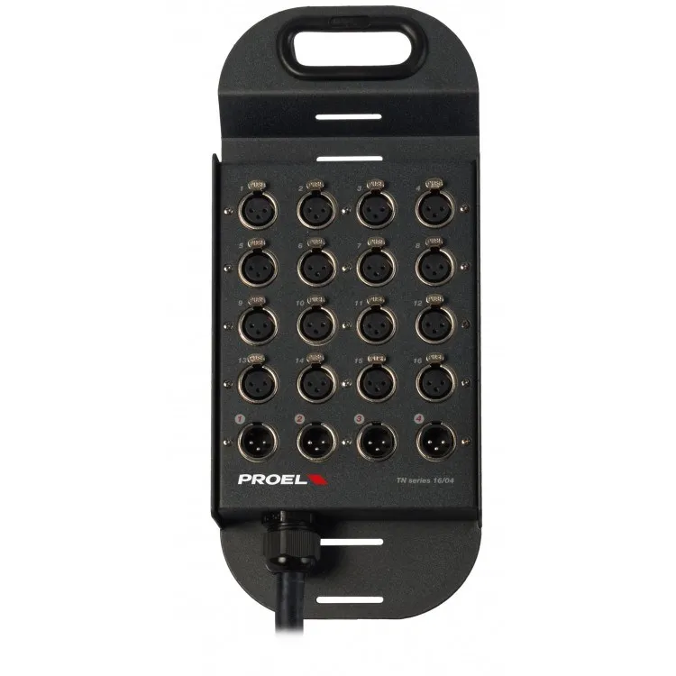 TN1604LU30 является мультикором от итальянской компании Proel. Представляет собой коммутационный бокс, изготовленный из листовой оцинкованной жести с эпоксидной краской высокой стойкости при помощи современного оборудования и спроектирован в соответствии с действующими правилами безопасности. При изготовлении используется технология полуавтоматической сварки в аргонно-углеродной (80/20) среде. <br />Мультикор оснащен 20-ти парным многоядерным кабелем высококачественной сборки серии CMN длиной 30 м с отдельным заземлением. Оборудован термостойкими (до 150°C) кабельными монтажными клеммами. TN1604LU30 позволяет наращивать длину системы без изменений конфигурации, что положительно влияет на скорость развертывания и удобство коммутации. Оснащен 16-ю входными и 4-мя выходными разъемами и поддерживает конфигурацию до 40 каналов.