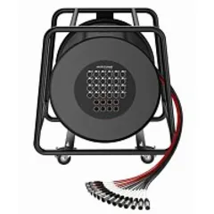 Мультикор Roxtone SCDE0804L10 — это устройство на стальной катушке с четырьмя колёсами, два из которых оснащены тормозом. Он оснащён многожильным аудиокабелем с 100% экранированием. Имеет 8 входов и 4 выхода, а также специальные разъёмы Roxtone.