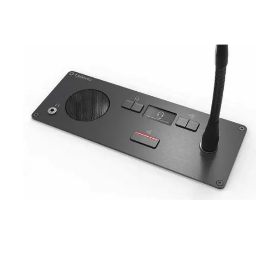 Врезной пульт делегата Televic Confidea F-DI — это компактное устройство для систем с базовыми функциями обсуждения. Оснащён громкоговорителем и разъёмом для съёмного микрофона (30, 40 или 50 см). Есть гнездо под штекер 3,5 мм для подключения наушников или индукционной петли. Для синхронного перевода предусмотрен селектор каналов с регулировкой громкости. На дисплее отображается ISO-код языка и громкость.