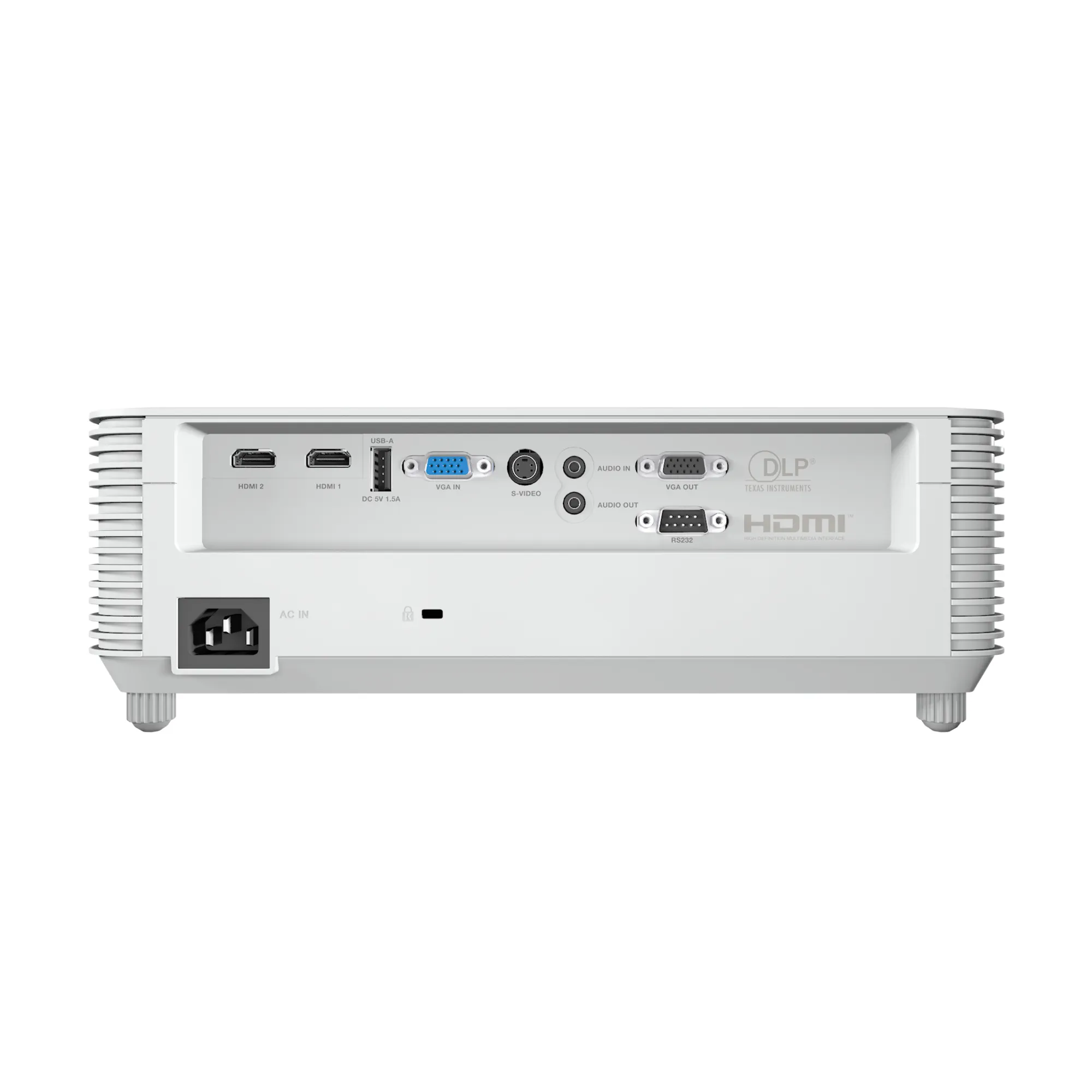 Проектор оснащён двумя HDMI 1.4, VGA, USB-A, S-Video и аудиоразъёмами 3,5 мм. Компактные размеры и вес 2,9 кг упрощают транспортировку. Встроенный динамик мощностью 10 Вт подходит для небольших помещений.