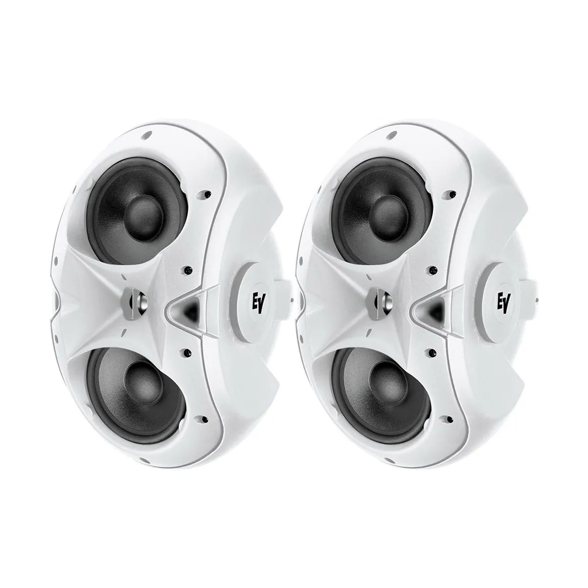 Пассивная акустическая система EVID 4.2TW от Electro-Voice предназначается для установки как в небольших помещениях, таких как бары и магазины, так и вне помещений, например, на террасах. Лаконичные органические формы, компактные размеры и белый цвет позволяют неброско вписать акустическую систему в любой интерьер.Эта акустическая система мощностью 200 Вт при 8 Ом воспроизводит звук в диапазоне 65 – 20000 Гц. Ее конструкция построена на двух 4-дюймовых низкочастотных излучателях и одном дюймовом высокочастотном спикере. Расположение вуферов, как и их поворот на 10 градусов способствуют наиболее равномерному звуковому покрытию. А их количество призвано повысить выходную мощность системы и наделить басы глубиной и отчетливостью. Кроссовер этой акустики разделяет сигнал на частотном пороге в 2,2 кГц. А во избежание перегрузок НЧ и ВЧ драйверов установлен пассивный лимитер. Корпус изготовлен из прочного пластика черного цвета с влагозащитным покрытием. Монтаж EVID 4.2T настенного типа и последующий выбор угла производятся с легкостью благодаря ее фирменному кронштейну.
