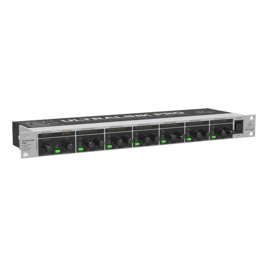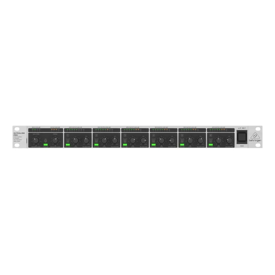 Шесть монофонических каналов Behringer ULTRALINK PRO MX882 могут быть использованы в режиме сплиттера и микшера. К примеру, стереоисточник может быть подключен через основные входы, а затем направлен в любой из моноканалов с переключением в режим сплиттера. В режиме микшера входные сигналы от любого из шести каналов или от всех них могут быть направлены на стереофонический мастер-выход с индивидуальными настройками баланса и панорамирования. В этом режиме основной стереосигнал автоматически посылается на мастер-выходы, что позволяет в общей сложности объединить до восьми индивидуальных сигналов. Ручки регулировки позволяет сделать гейн до +15 дБ на каждый из каналов.
