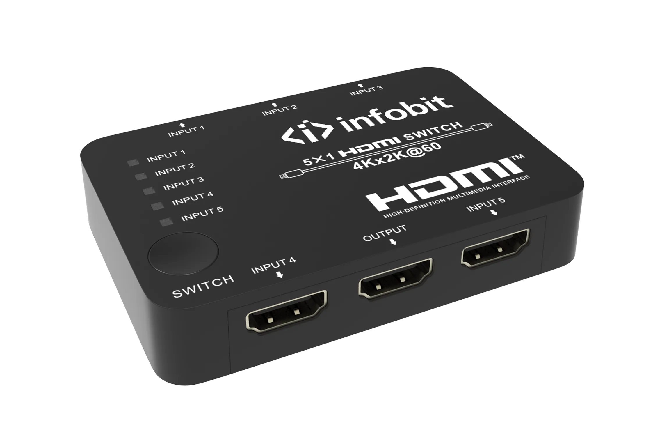 Infobit iSwitch S501 — презентационный коммутатор. Совместим с HDCP 2.2/1.x и DVI 1.0. Поддерживает пропускную способность видео 18 Гбит/с. Есть поддержка HDR, HDR10, Dolby Vision и HLG. Разрешение видео — до 4K2K при 50/60 Гц YCbCr 4:4:4. Есть поддержка 3D видео.