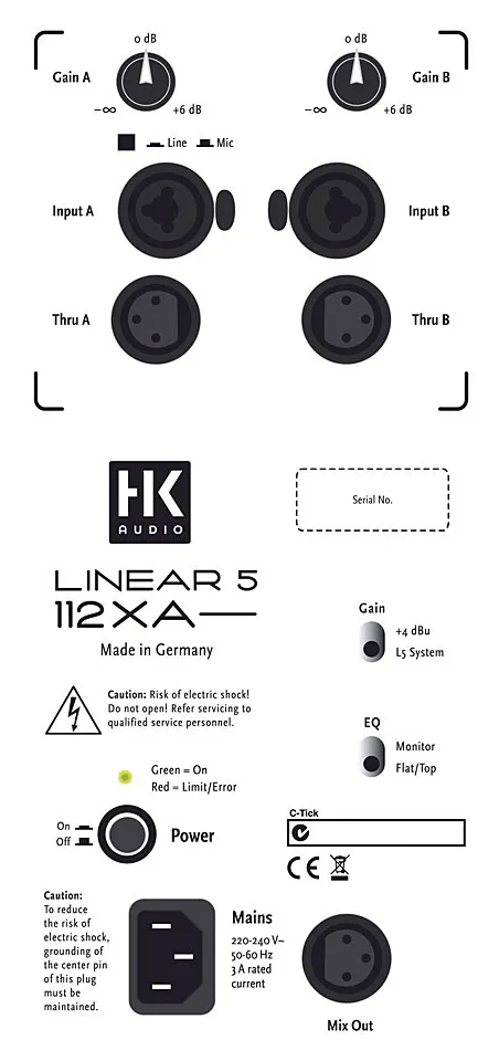 Гибридный корпус обеспечивает высокое звуковое давление. Чёрное акриловое покрытие защищает от царапин, а металлическая решётка — от перегрева. Внутри есть защита от перегрузки, короткого замыкания и термозащита. HK Audio L5 112 XA — это надёжное устройство, которое порадует вас качественным звуком.
