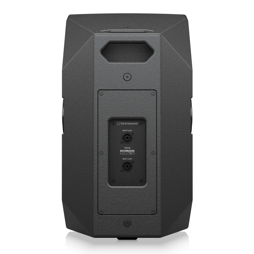 Профессиональная концертная акустическая система TURBOSOUND TQ10. Мощность: 400–1600 Вт. Звуковое давление: до 135 дБ (пиковое), до 130 дБ (продолжительное). Диапазон частот: 45–20 000 Гц. Подключение через аудиоразъёмы Neutrik Speakon NL4.
