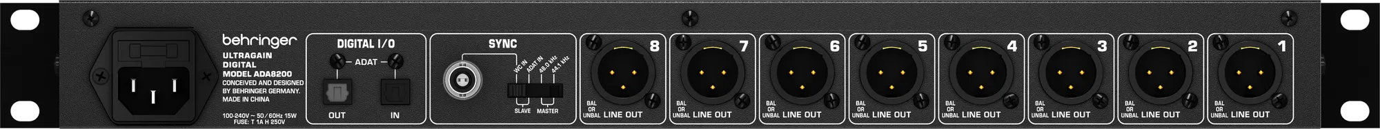 Аудиоинтерфейс Behringer ADA8200 — это 8-канальный аналогово-цифровой/цифро-аналоговый интерфейс для цифровой записи и микширования. Устройство оснащено MIDAS-направленными микрофонными предусилителями, 24-битными конвертерами Cirrus Logic и поддерживает частоты дискретизации 44,1 и 48 кГц. Имеет сбалансированные XLR и 1/4 TRS входы/выходы, а также несбалансированный вход TS. Оптический ADAT интерфейс поддерживает до 8 каналов данных.