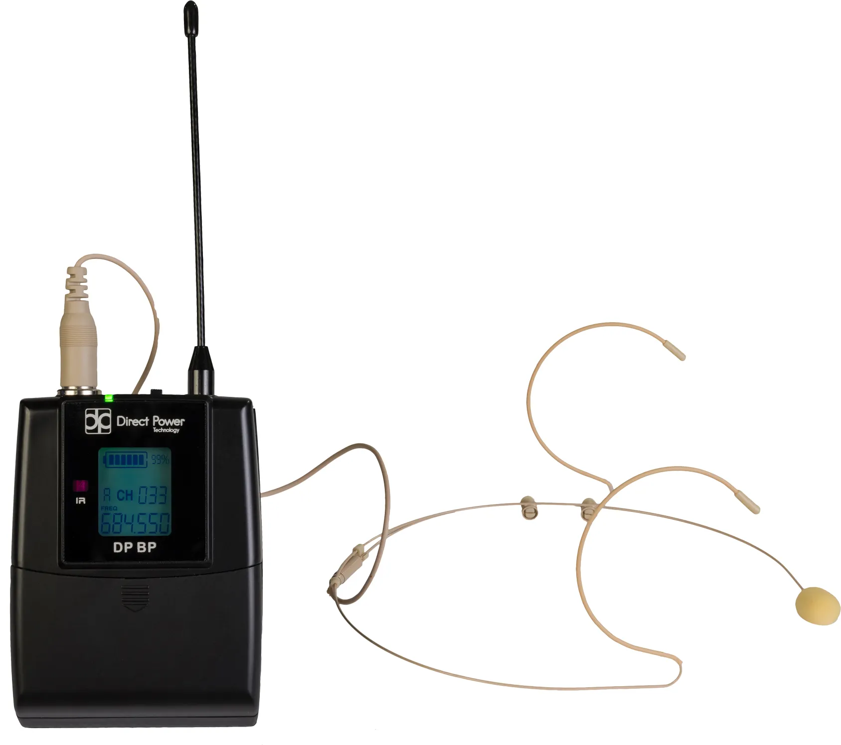 Головная одноканальная аналоговая радиосистема DP-200 HEAD — профессиональное решение для публичных выступлений. Для использования нужно закрепить передатчик на поясе, подключить головной микрофон и включить приёмник.
