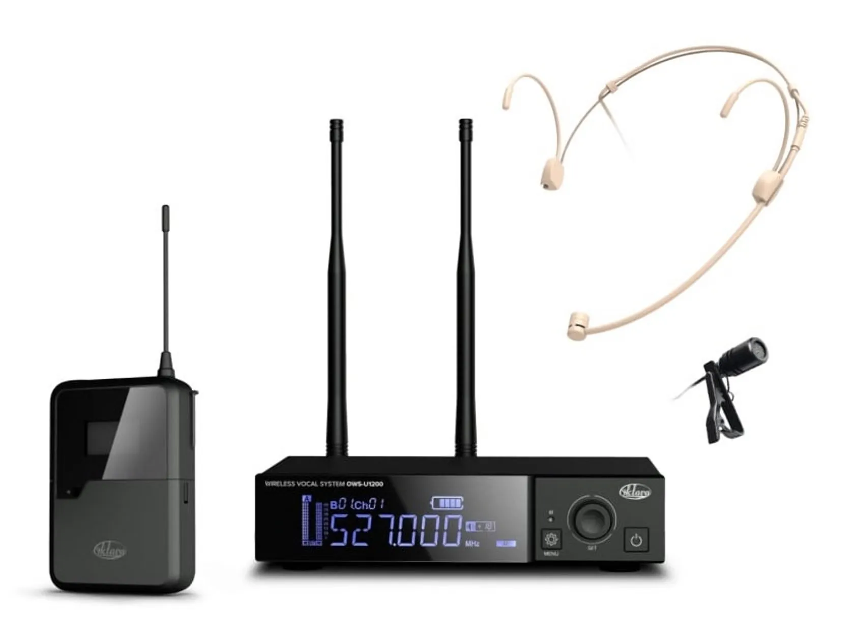 Радиосистема Октава OWS-U1200D01L02 — это система с головным и петличным микрофоном. Она автоматически сканирует частоты и выбирает наименее загруженную.