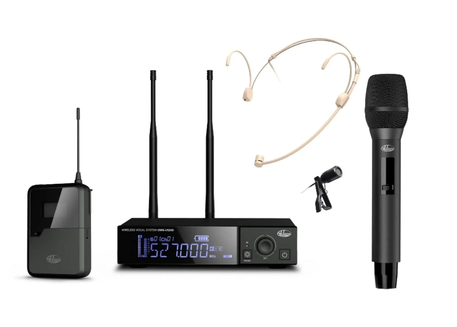 Радиосистема Октава OWS-U1200HD01L02 — это одноканальная система с ручным и поясным передатчиком, микрофонами D01 и L02. Обеспечивает передачу сигнала в широком диапазоне частот 512–562 МГц.