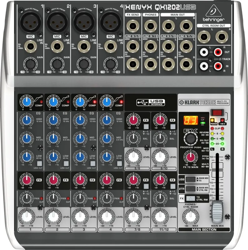 XENYX QX1202USB - следующее поколение XENYX Q Серии USB микшеров может справиться с любым живым концертом и обеспечить современного технического уровня инструменты профессионального качества записями. Модель оснащена ”беспроводной готовностью” для новых ULM Серии USB микрофонов, что делает ее первой в этом виде микшеров. Встроенный USB/аудио интерфейс , компрессор на моно каналах и KLARK TEKNIK FX процессор со всем записывающим и редактирующим программным обеспечением превратит Ваш компьютер в полную, высокоэффективную студию.KLARK TEKNIK FX