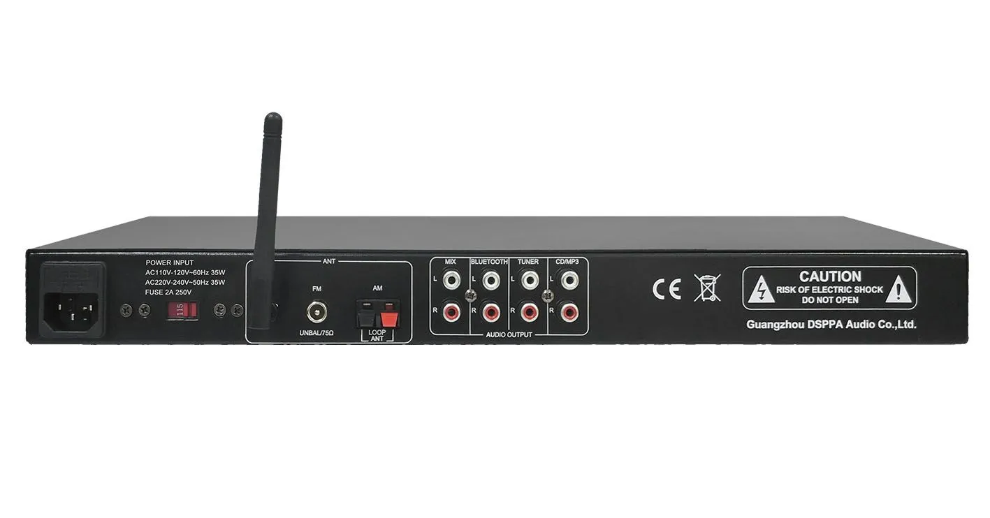 Музыкальный проигрыватель DSPPA MAG-2107C предназначен для воспроизведения аудио сигнала в системах музыкальной трансляции. Проигрыватель имеет встроенные источники аудио сигнала, FM-тюнер, CD-плеер, МР3 -плеер (SD, USB), Bluetooth. Независимые выходы FM-тюнера, CD-плеера и Bluetooth, позволяют транслировать музыкальный контент одновременно в три отдельные зоны.Характеристики и возможности